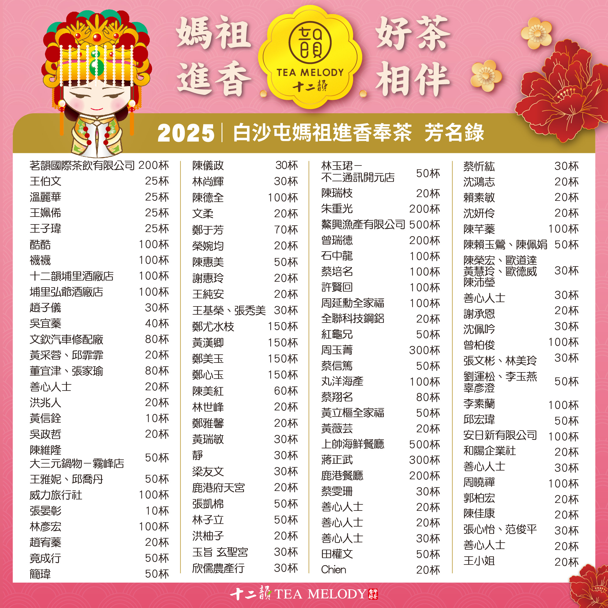 誠摯感謝所有參與奉茶認購的企業與善心朋友們。
