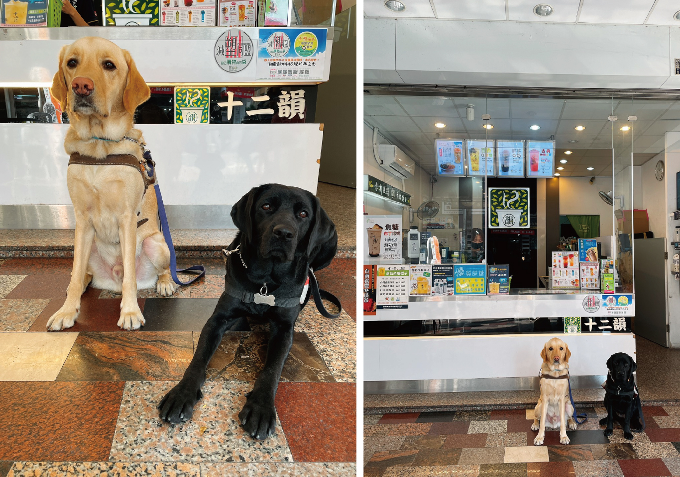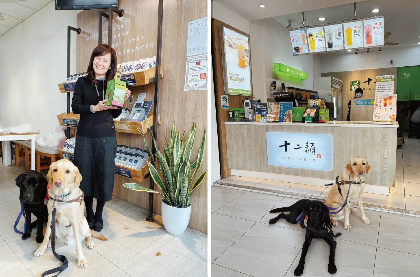 台灣導盲犬協會與十二韻國際連鎖茶飲於全國各分店設置導盲犬捐款箱,為導盲犬培訓計畫盡一份心力。