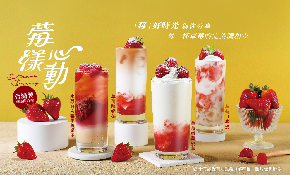 酸甜草莓果香與醇濃奶茶相遇,每一口都充滿了柔和的幸福滋味。