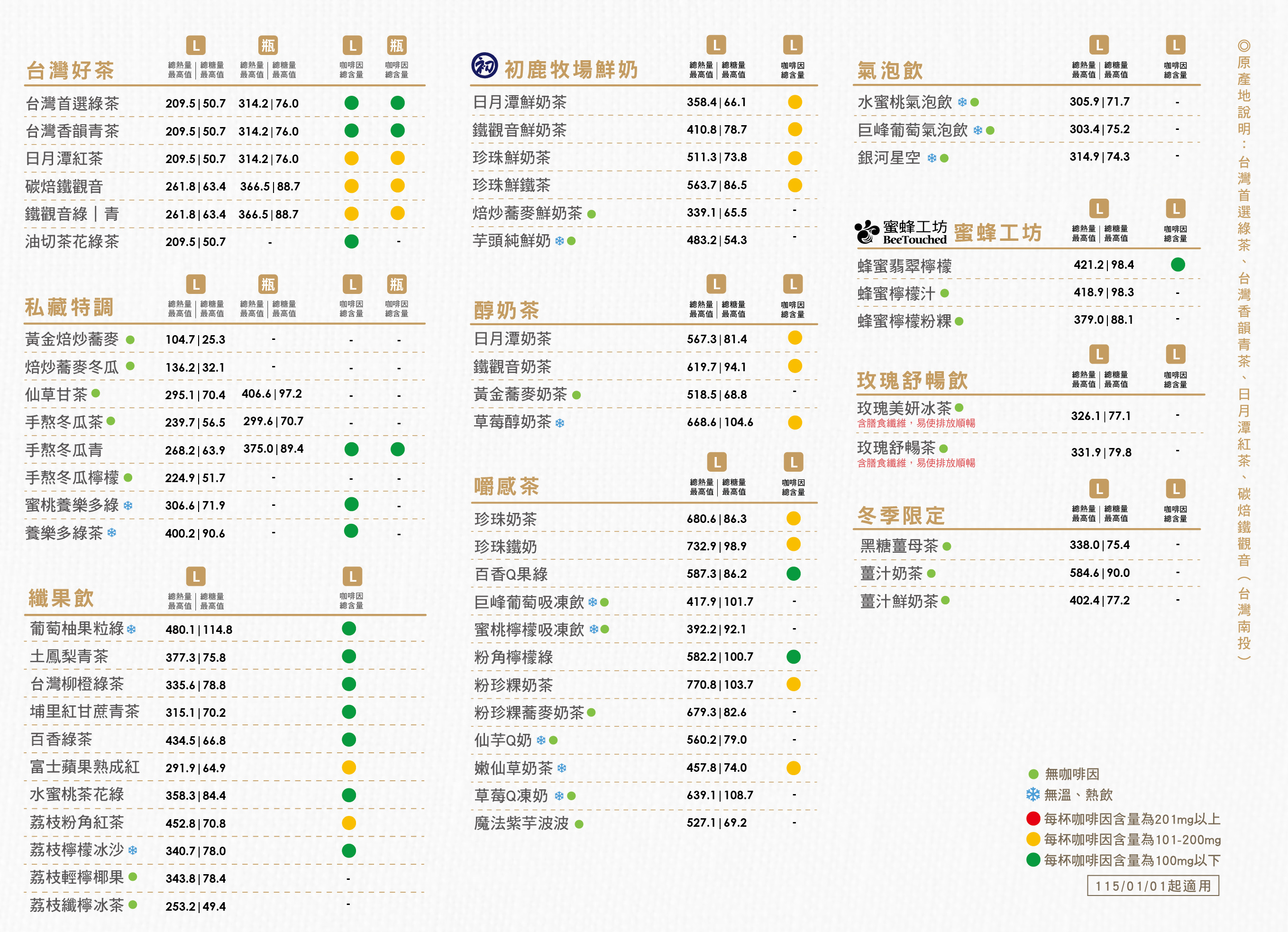 飲品皆為現點現做,點餐請告知喜好的甜度與冰量